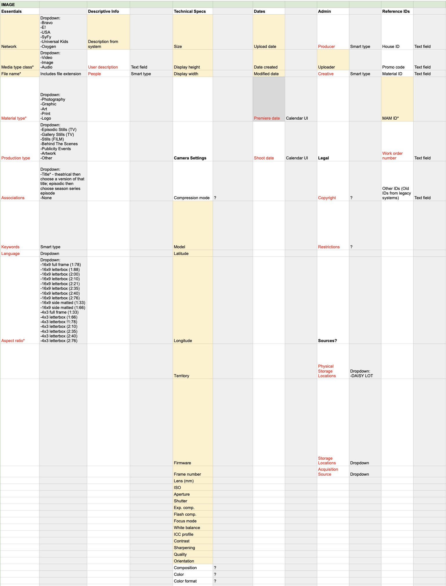 We found that users had different metadata that was important to them based on the type of media it was (video, audio, and image). Based on how all the users grouped their metadata, we came up with a proposal for the form fields for each type of asset in MAM below. The comprehensive card sorting results are 🔗 here.